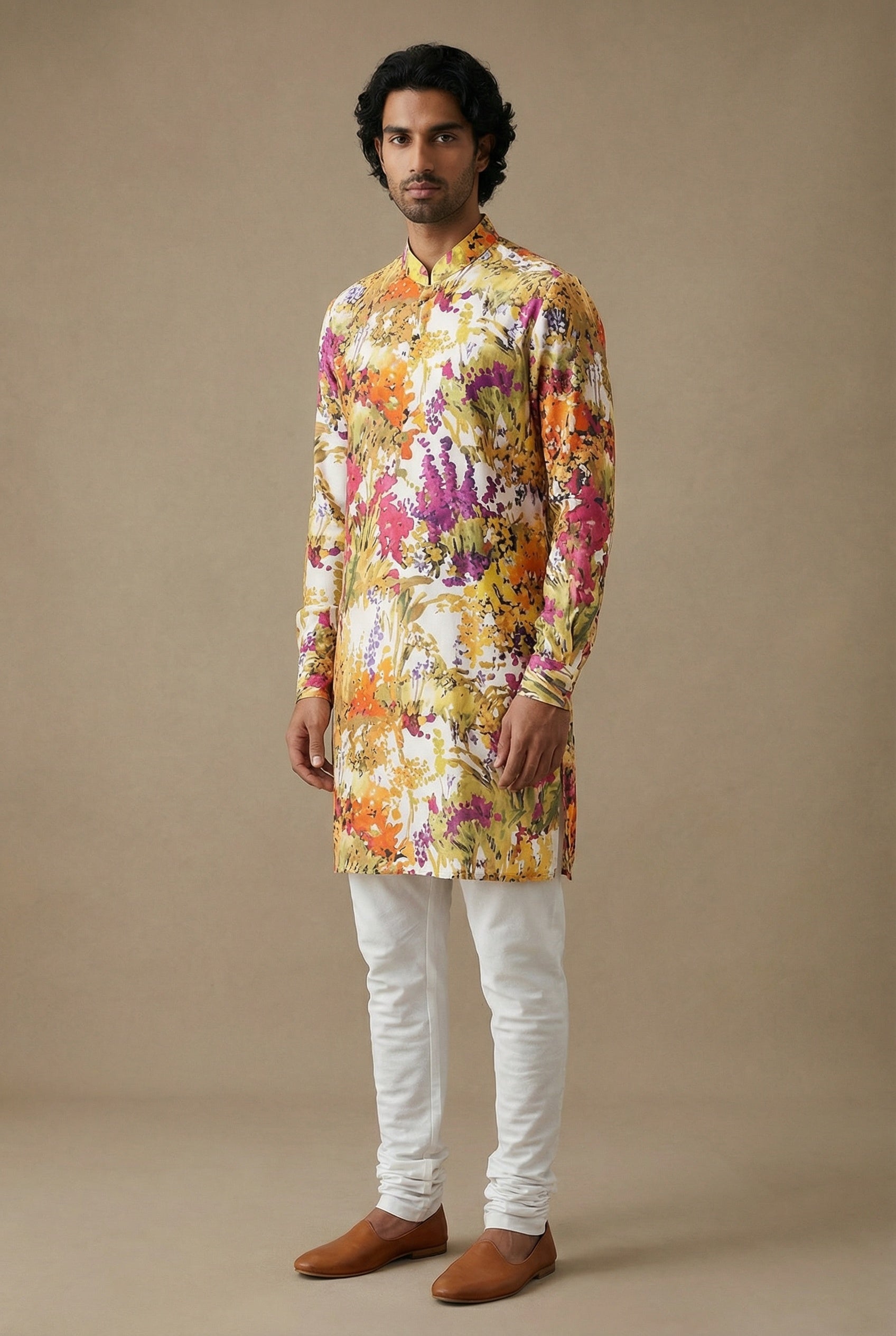 Multicolor floral print kurta inspired by Monet, ideal for a Welcome Dinner, Mehendi, or Haldi!