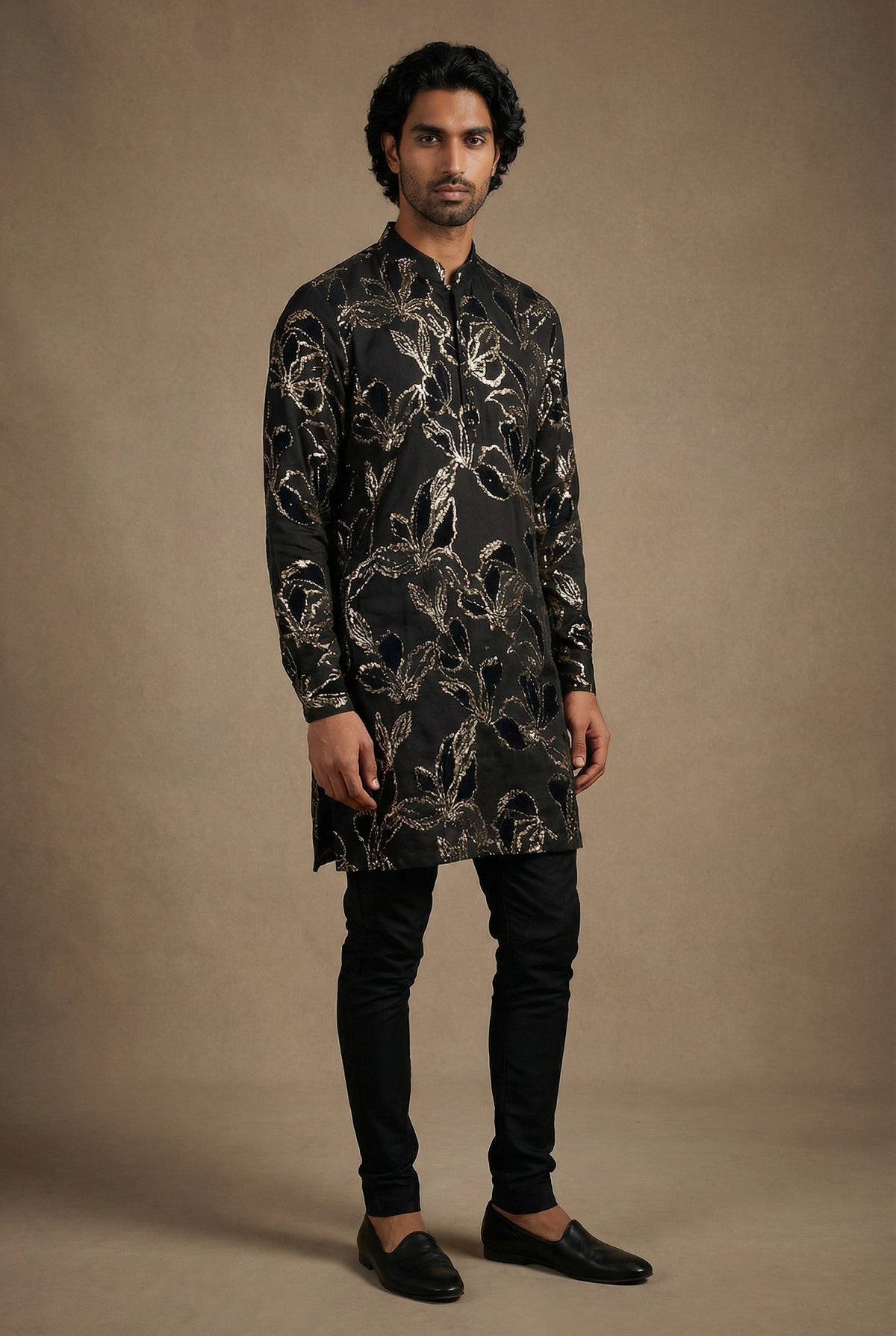 Find the most comfortable Indian men's kurtas and button-up men's shirts in a range of floral prints, geometric prints, gold foil prints, and solids to bring the party wherever you go.