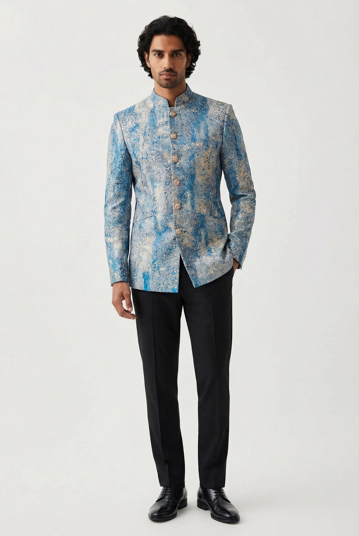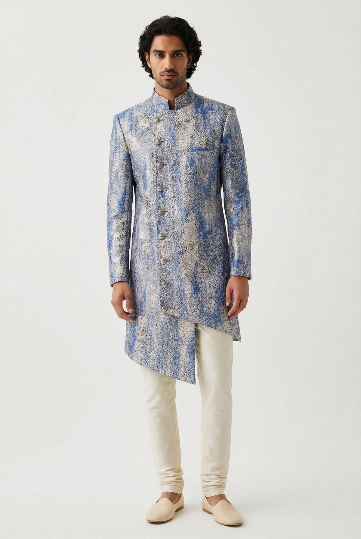 Find your serenity in calming blue lehenga skirts and blouses, navy blue kurtas and pajama pants, pastel blue sherwani jackets and vests, and turbans to match! Shop all the blues below!
