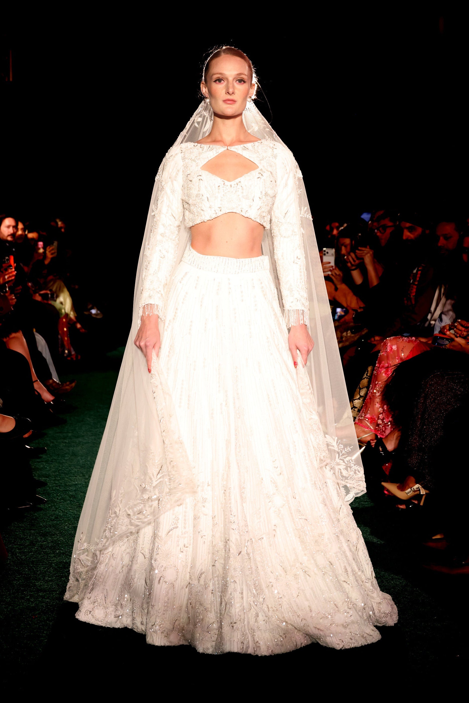 Visit our NYC Showroom to shop the AASHI White Bridal Lehenga Set with a Harleen Kaur stylist.
