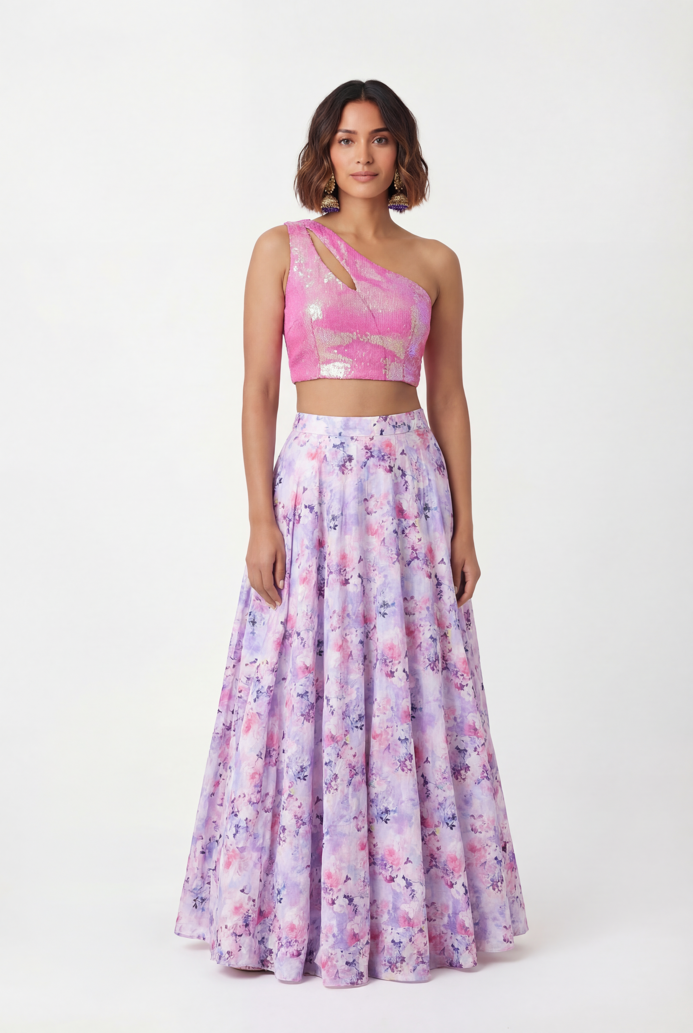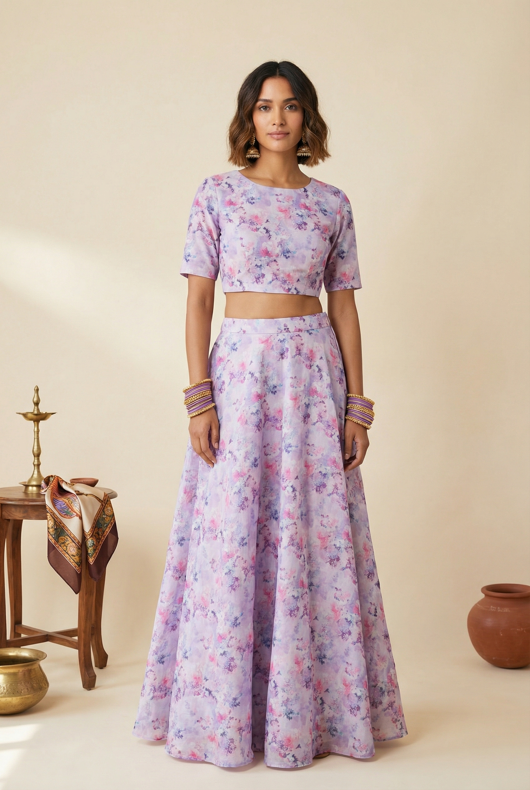 ANISHA Purple Cotton Floral Skirt