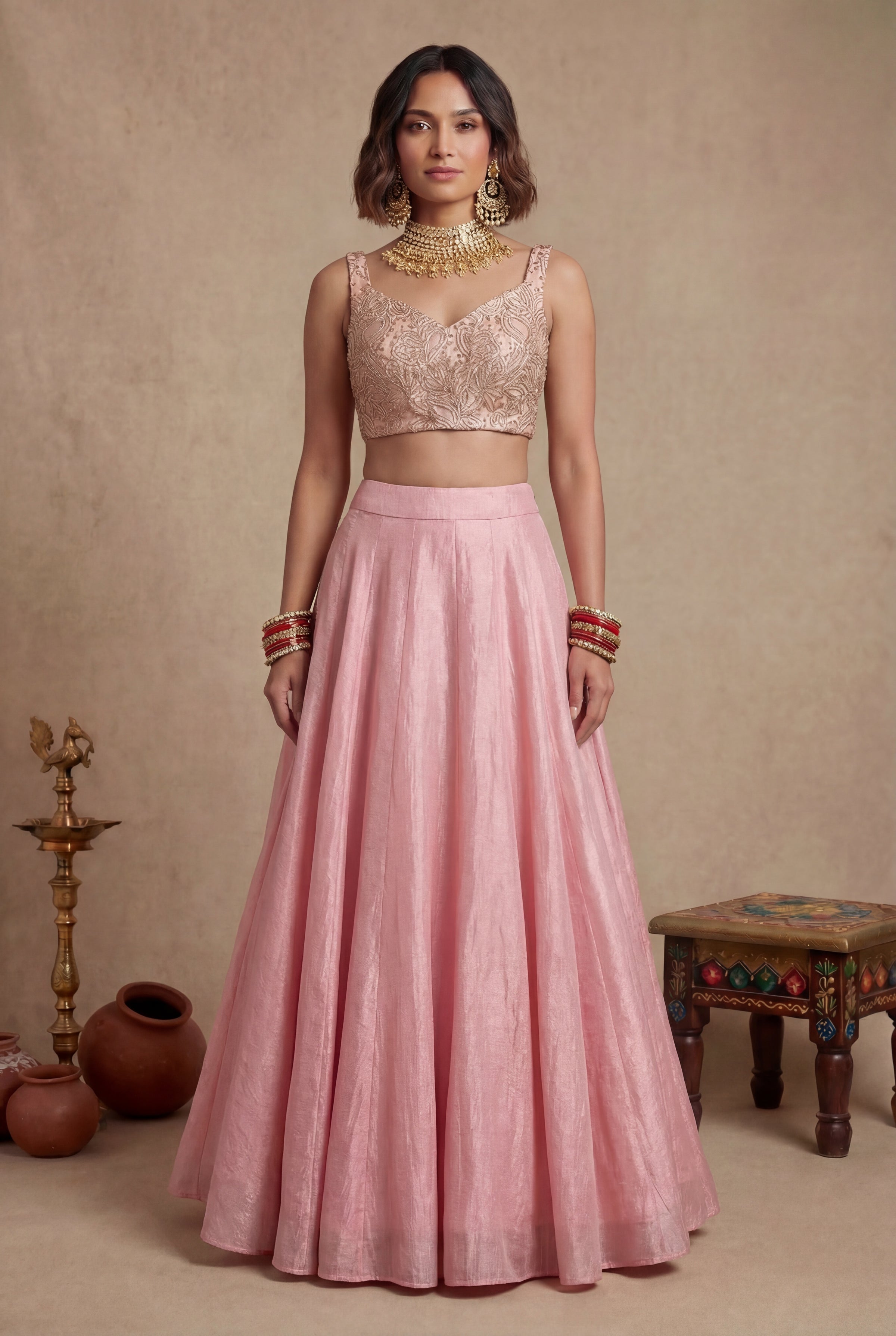 The Essential Silk Lehenga Skirt. Make any blouse or dupatta pop with our solid lehenga skirt in a variety of colors made from Dupioni silk. Fabric slightly changes tone in the light, transforming your outfit. Lined for additional comfort.