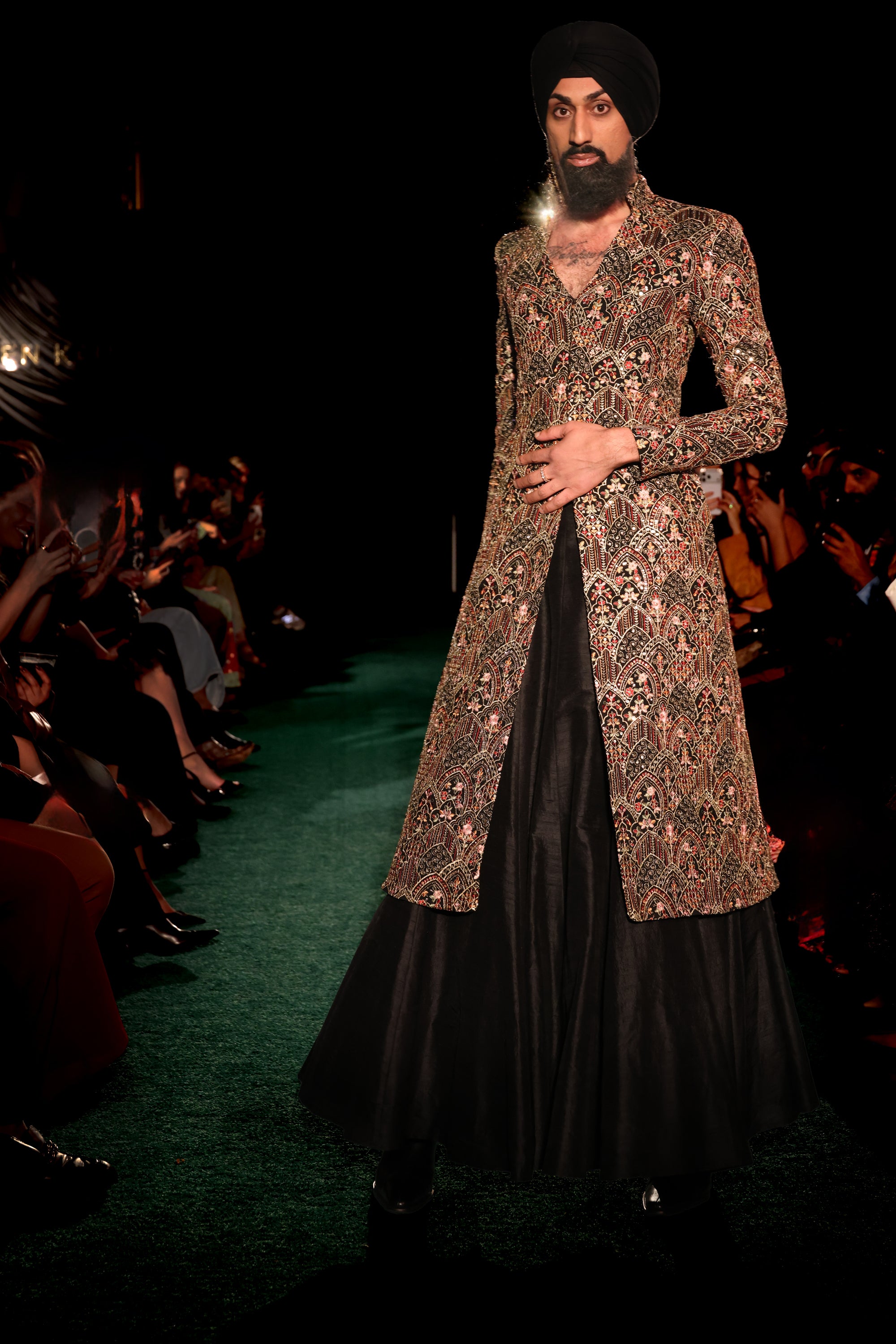 This intricate Jacket Dress has a beautiful embroidery on a black georgette fabric, filled with subtle color and shine. Pairs beautifully with a skirt for a festive occasion, or dress it down for a more casual occasion with a pair of denim.