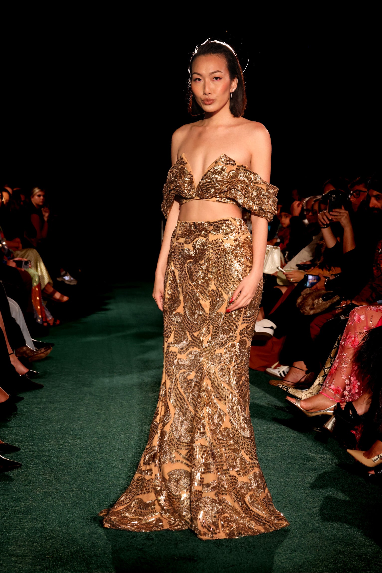 Visit our NYC Showroom to shop the NAYLA Gold Lehenga Set with a Harleen Kaur stylist.